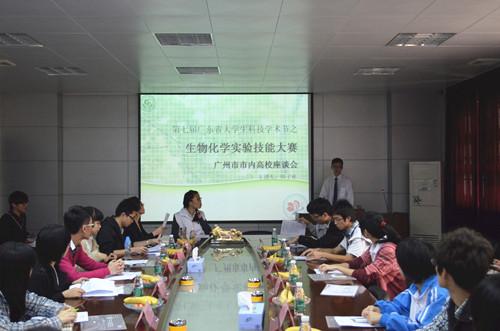 本次座談會(huì)有中山大學(xué)、華南理工大學(xué)、華南師范大學(xué)、暨南大學(xué)、南方醫(yī)科大學(xué)、廣東藥學(xué)院、廣州中醫(yī)藥大學(xué)、廣州大學(xué)、廣州醫(yī)學(xué)院、廣州第二師范大學(xué)、仲愷農(nóng)業(yè)工程學(xué)院以及廣東食品藥品職業(yè)學(xué)院等13所高校的代表參加。會(huì)議上,主持人韓子彬首先播放了生化技能大賽的宣傳短片。接下來(lái),他向大家詳細(xì)介紹了大賽的流程、籌備進(jìn)度、儀器藥品要求、評(píng)分標(biāo)準(zhǔn)以及獎(jiǎng)項(xiàng)設(shè)置等情況,并詳述了大賽的注意事項(xiàng)。各高校的代表紛紛認(rèn)真記錄。