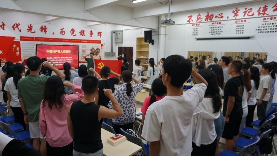 最后,全體參會人員面對黨旗莊嚴(yán)舉起右手,新入黨同志進行入黨宣誓,其他支部同志一起重溫入黨誓詞,領(lǐng)悟入黨初心。