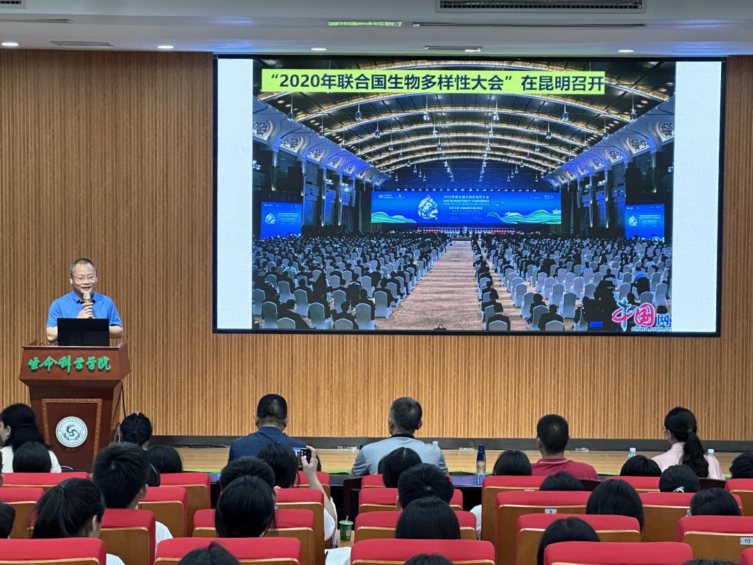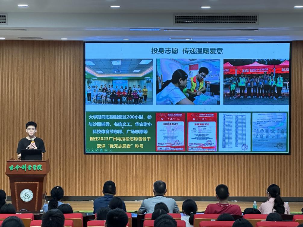 生命科學學院植物學系主任張榮京老師為同學們帶來“生物多樣性”的專題科普講座,講座內(nèi)容豐富、生動有趣,同學們通過講座深入了解生物學領域知識,感受濃厚的學術(shù)氛圍。第十屆華農(nóng)之星標兵獲得者、生科21生科1班高澤濤同學和曲江中學校友、我校電智學院葉銘昊同學為同學們分享他們的大學生活與經(jīng)驗。通過分享,同學們豐富了對大學生活的認識,感受到我校良好的學習氛圍。