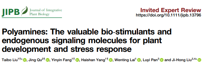 近日,我校生命科學(xué)學(xué)院、亞熱帶農(nóng)業(yè)生物資源保護與利用國家重點實驗室陶利珍/劉太波課題組,與華中農(nóng)業(yè)大學(xué)園藝林學(xué)學(xué)院劉繼紅課題組合作在中科院一區(qū)期刊JIPB(兩年影響因子9.3,植物科學(xué)TOP 2%)上發(fā)表題為“Polyamines: the valuable bio-stimulants and endogenous signaling molecules for plant development and stress response”的特約綜述論文。