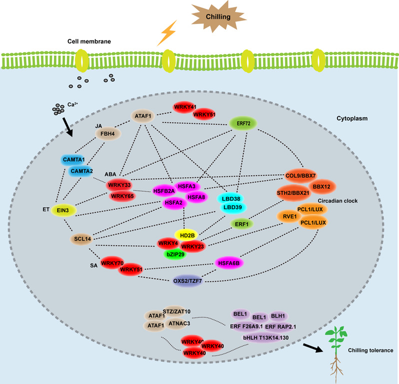 圖2. 耐寒性差異轉(zhuǎn)錄調(diào)控網(wǎng)絡關鍵轉(zhuǎn)錄因子作用模型。