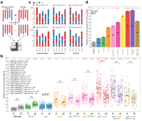 圖1. ZYP1和RECQ4雙突變極大提升CO頻率并揭示重組上限