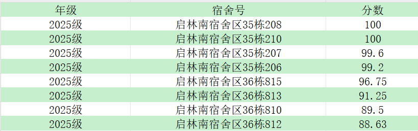 2025-2026學(xué)年第一學(xué)期10月12日,生命科學(xué)學(xué)院宿舍檢查人員對(duì)全院的宿舍衛(wèi)生情況進(jìn)行檢查。宿舍檢查結(jié)果如下: