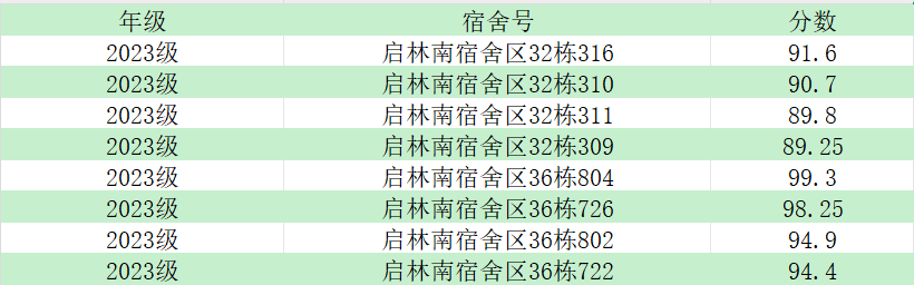 2025-2026學年第一學期10月12日,生命科學學院宿舍檢查人員對全院的宿舍衛(wèi)生情況進行檢查。宿舍檢查結果如下: