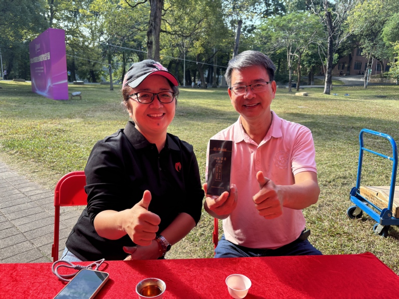 (圖為吳巧云校友與蘇保榮校友在校友企業(yè)產(chǎn)品展上的合照)