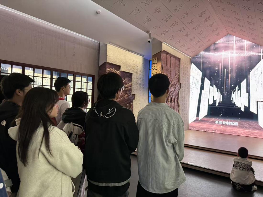 青磚灰瓦間,“升官發(fā)財請往他處”的黃埔軍校校訓振聾發(fā)聵。這里曾是革命火種的搖籃,無數(shù)先輩在此淬火成鋼,懷揣救國理想奔赴疆場。駐足展柜前,泛黃的書信、斑駁的軍裝訴說著崢嶸歲月,同學們觸摸歷史溫度,更接過傳承紅色血脈的時代接力棒。展廳墻面上百年建校紀念墻的數(shù)字亮著,1924與2025的光影疊在一處,恍惚聽見先輩的腳步聲與同學們的足音共振。同學們放輕腳步,低聲講著展品里的故事,紅色的溫度順著鞋底浸進心底。