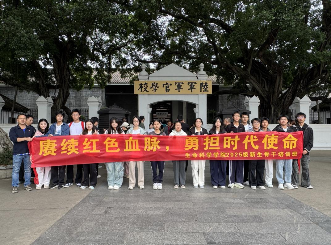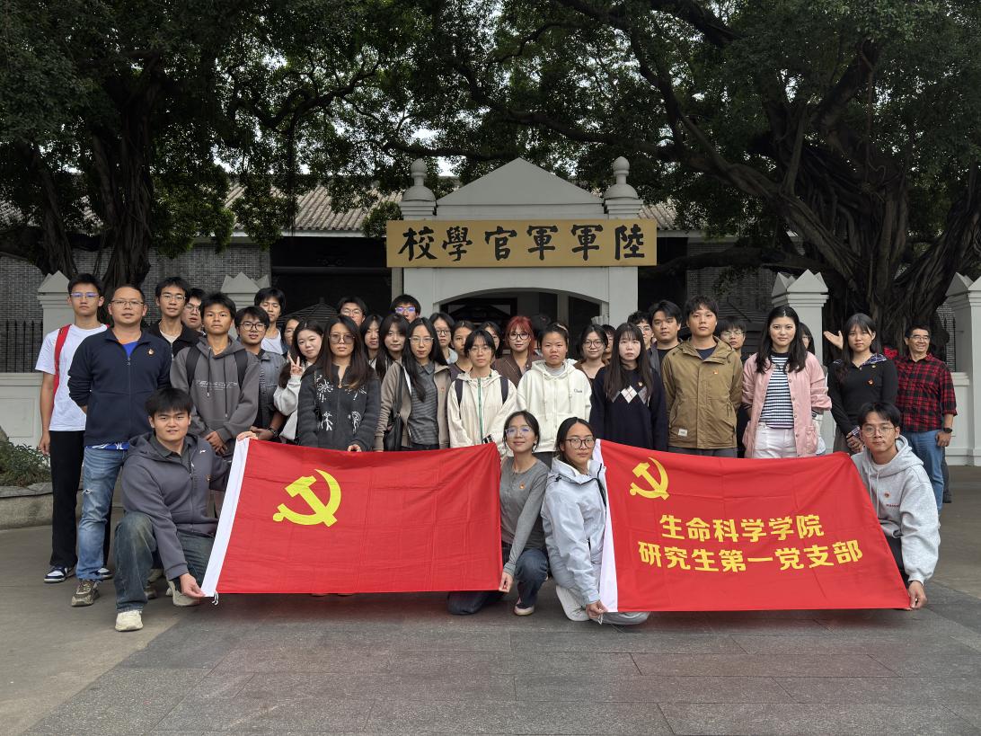 為深入學習貫徹黨的二十屆三中、四中全會精神和全國教育大會精神,全面落實立德樹人根本任務,進一步加強學生骨干隊伍的政治素養(yǎng)與責任擔當。生命科學學院組織2025級新生骨干培訓班學員和研究生第一黨支部黨員,共同前往黃埔軍校舊址紀念館,開展紅色文化主題教育參觀實踐活動。