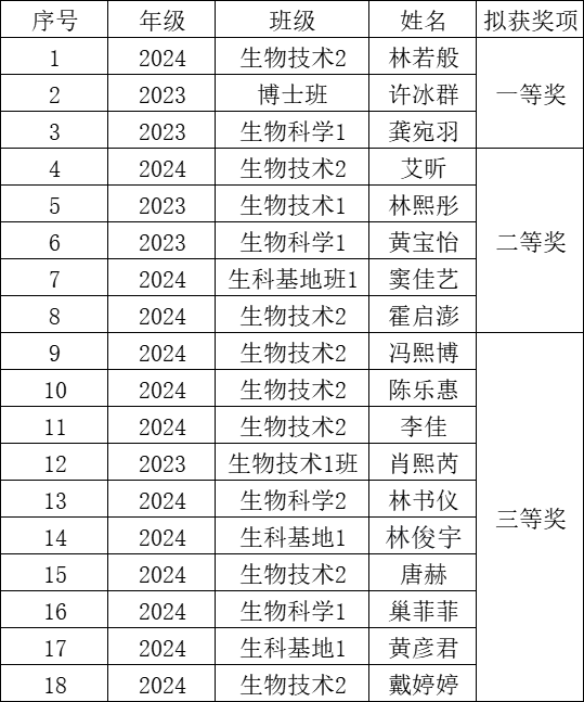根據(jù)學(xué)校《關(guān)于組織學(xué)生參加第三屆全國大學(xué)生職業(yè)規(guī)劃大賽華南農(nóng)業(yè)大學(xué)校賽的通知》要求,經(jīng)學(xué)生自主申報(bào)、學(xué)院組織評(píng)審,現(xiàn)將生命科學(xué)學(xué)院院賽獲獎(jiǎng)名單予以公示。