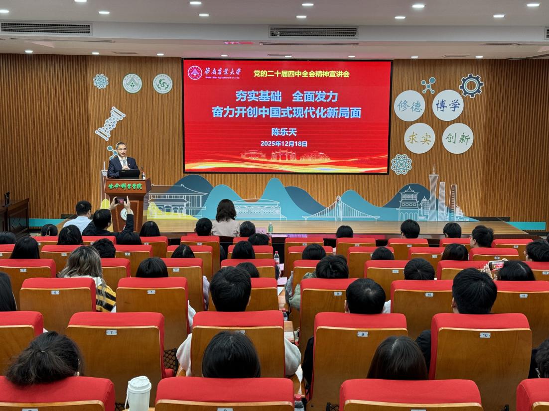 為推動(dòng)黨的二十屆四中全會(huì)精神在基層學(xué)院落地生根,切實(shí)把師生思想和行動(dòng)統(tǒng)一到黨中央關(guān)于“十五五”發(fā)展規(guī)劃的戰(zhàn)略部署上來,12月18日上午,校黨委常委、副校長(zhǎng)陳樂天在生命科學(xué)學(xué)院119報(bào)告廳為我院遺傳學(xué)教工黨支部、研究生第一黨支部全體黨員講授專題黨課,并開展黨建工作督導(dǎo)。學(xué)院黨委書記呂劍紅參加活動(dòng)。