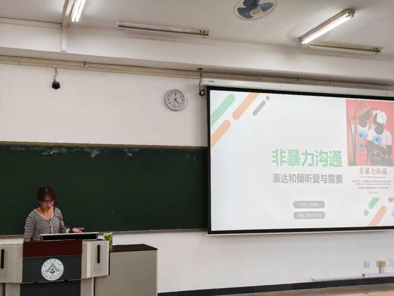 12月18日下午,生命科學(xué)學(xué)院在第四教學(xué)樓607教室成功舉辦了一場心理講座。本次講座以“非暴力溝通:構(gòu)建和諧人際關(guān)系”為主題,旨在幫助學(xué)生提升人際溝通能力,營造積極健康的心理環(huán)境。講座由學(xué)院輔導(dǎo)員助理張家源主持,特邀華南師范大學(xué)應(yīng)用心理專業(yè)在讀碩士生陳穎柔擔(dān)任主講嘉賓。